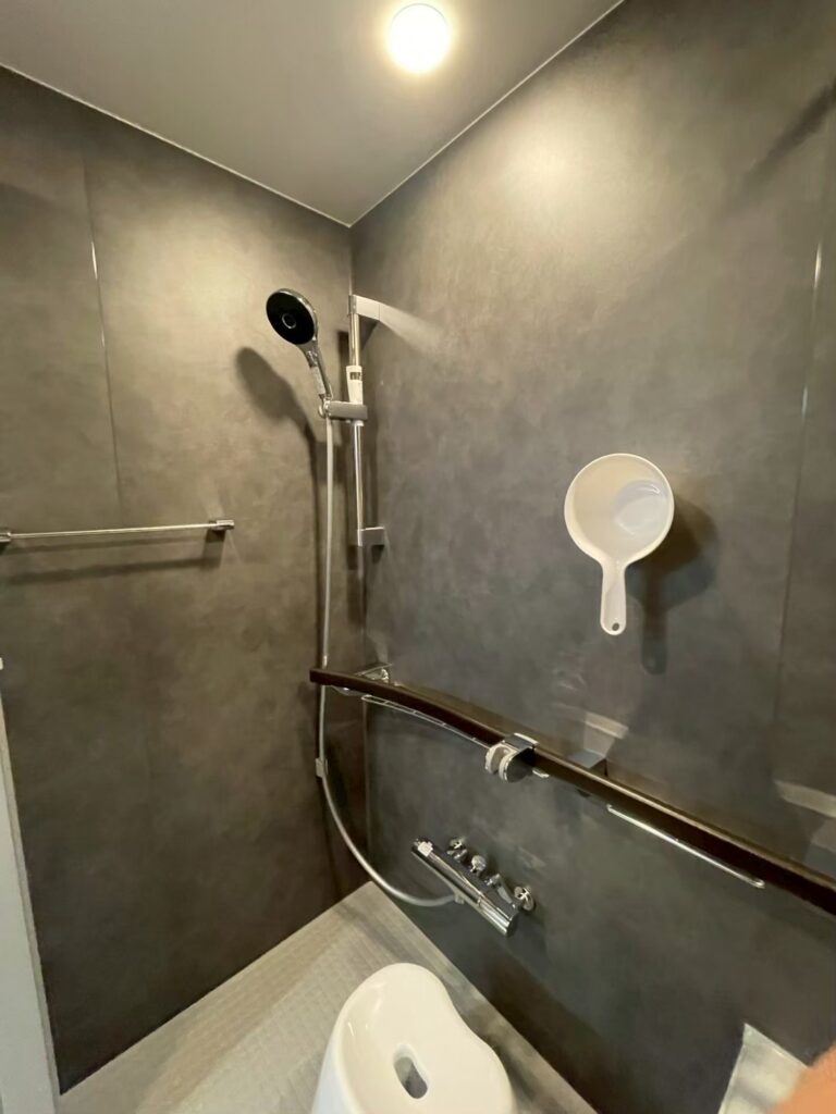 - シャワー位置の意外な便利さ: 網棚に手すりが付いていて、そこにシャワーホルダーを置けるのですが、これがすごく良い。頭を洗った後に、座ったまま至近距離でシャワーを浴びられるんです。これは実際に使ってみて「あ、便利だな」と実感したポイントです。