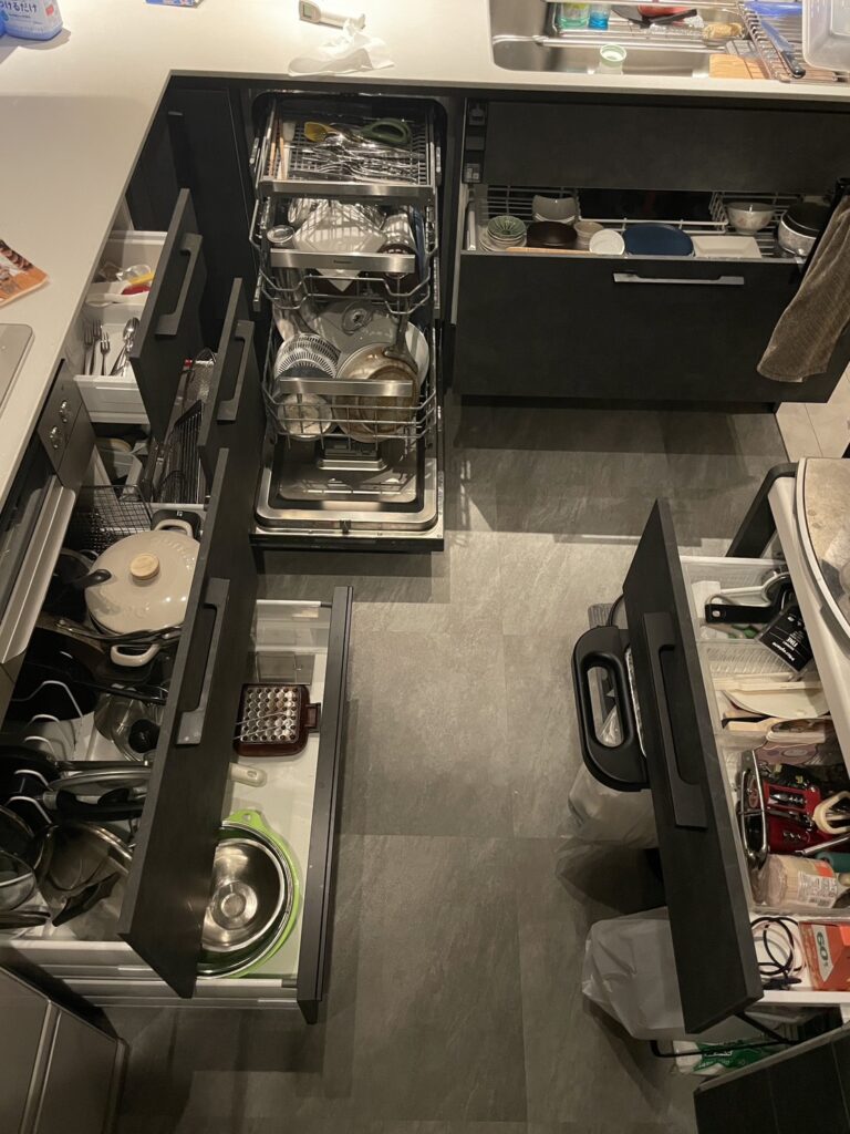 - 収納の勝利: 「とりあえずしまっておく場所」がどこかに必ずある、という安心感。ズボラでもキッチン台の上に物が出っぱなしになることがなくなりました。