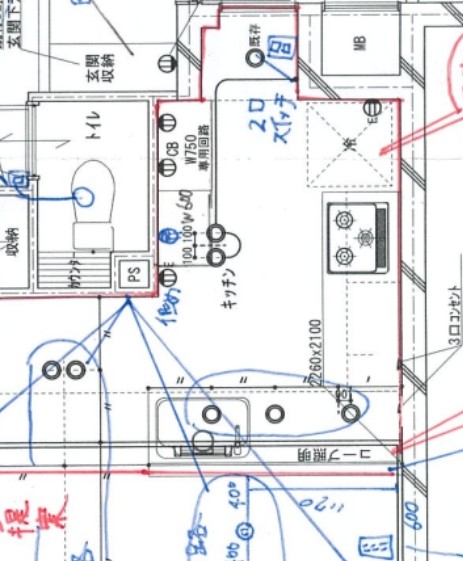 キッチン周りは家電の宝庫です。IT施主として、延長コードやタコ足配線は絶対に許せません。各エリアに過剰と思えるほどのコンセントを配置しました。