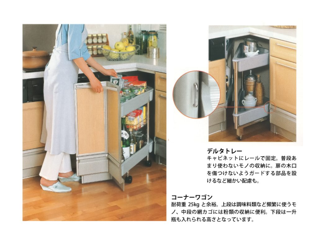 ちなみに、クリナップだとコーナーワゴンみたいなオプションがあり、いいなぁと思っていました。(うちのはリクシル)