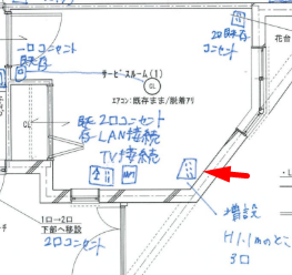 ここまで完璧に計算した電源計画ですが、1箇所だけ、痛恨のミスがありました。 それは、洗面台の横の壁です。